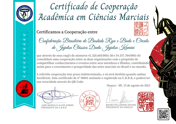 Círculo de Jujutsu Clássico–CJJC 伝統柔術組合 Dento Jujutsu Kumiai. É uma organização marcial brasileira com duas décadas de existência, que pesquisa e ensina o Jujutsu Clássico "A Habilidade Técnica/Artística Versátil". O Círculo de Jujutsu Clássico tem como emblema o tipo solar (identificado como a fonte da vida) em homenagem ao Japão "Terra do Sol Nascente" berço histórico da arte. Como símbolo representa; dinamismo, totalidade, perfeição e eternidade. Mauro Pellegrini Shihan é o seu diretor técnico e executivo, e José Higino Dai Shihan é o seu presidente de honra. A sua matriz (Hombu Dojo) fica em São Paulo – capital (Tesshu Dojo, bairro da Penha), além de possuir filiais de representação em todo Brasil, assim como em algumas partes do mundo. |